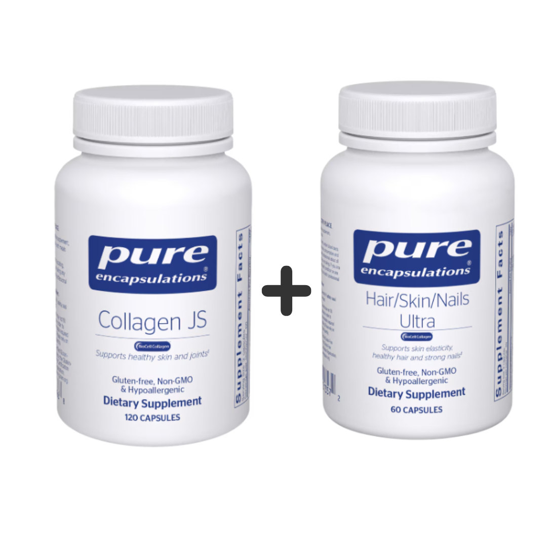Collagen is a primary protein in connective tissue. Supplementing with hydrolyzed collagen peptides supports joint health and skin elasticity. Paired with key vitamins and minerals, this bundle also nourishes hair, skin, and nails.